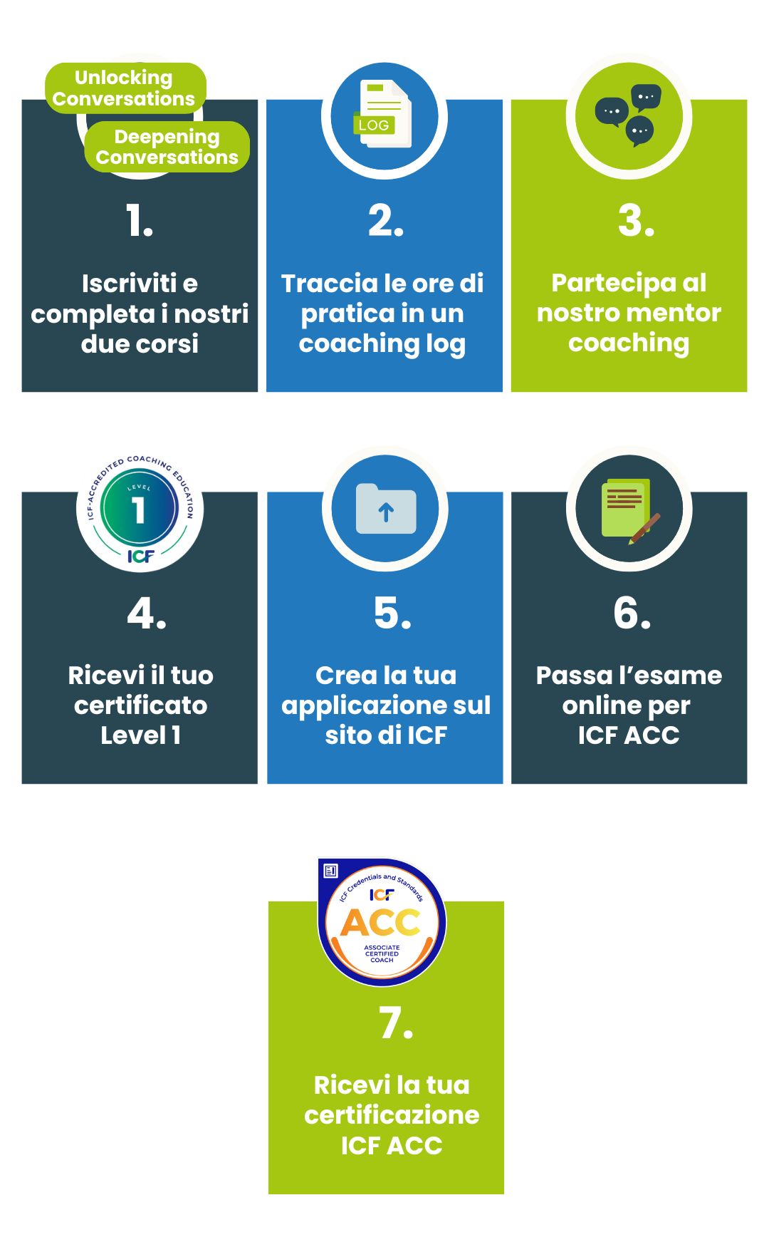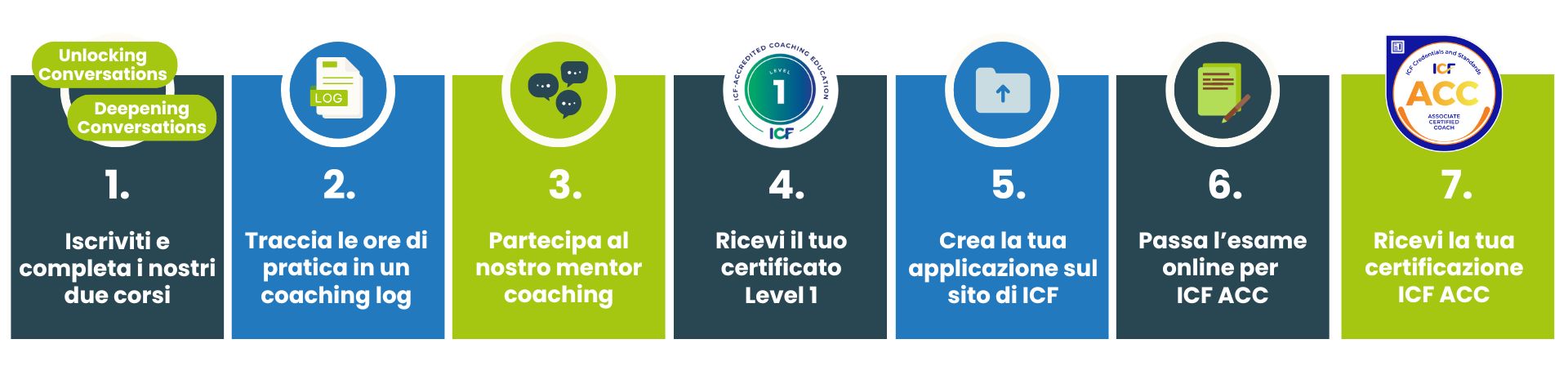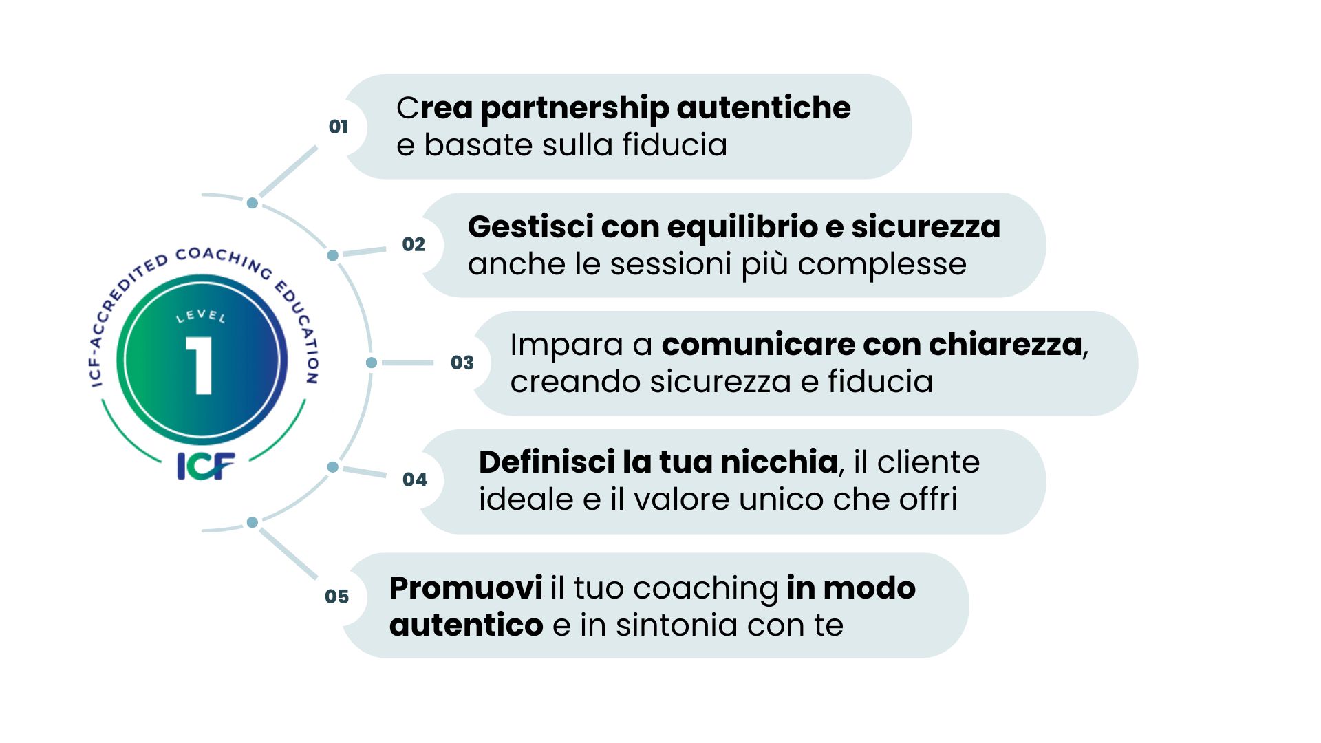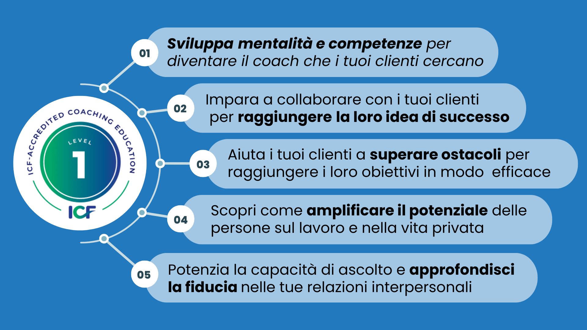 Livello 1 è designato come ACC (Associate Certified Coach) Accredited Education.